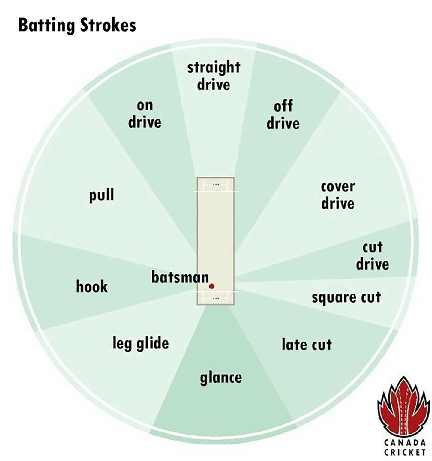 There is a variety of shots that the batsmen can play depending on how the bowler is throwing the ball.